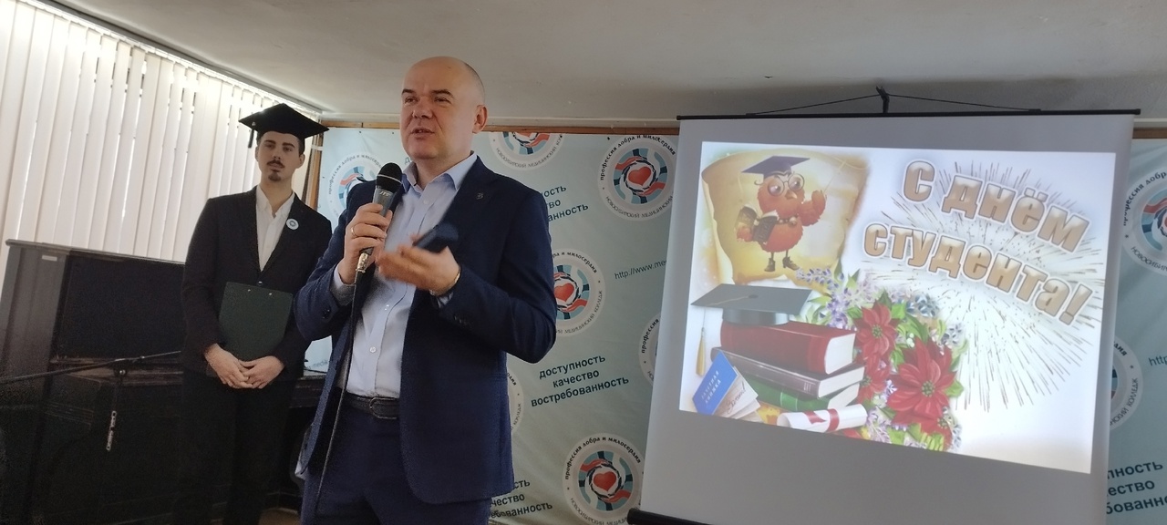 С приветственными словами к студентам и преподавателям обратился директор колледжа Алексей Николаевич Пилипенко. Он поздравил с праздником всех присутствующих и пожелал успешной реализации личных и профессиональных планов, здоровья и благополучия.